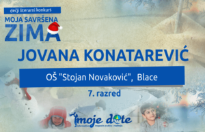 Jovana Konatarević je učenica 7. razreda Osnovne škole „Stojan Novaković” iz Blaca. Ona nam se u okviru dečjeg literarnog konkursa „Moja savršena zima“ predstavila...