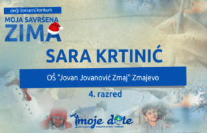 Sara Krtinić je učenica 4. razreda Osnovne škole "Jovan Jovanović Zmaj" iz Zmajeva. Ona nam se u okviru dečjeg literarnog konkursa „Moja savršena zima“...