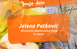 Pesmu “Miris dunje na ormaru” poslala nam je Jelena Petković učenica 6. razreda Osnovne škole ”Goračići“ Opština Lučani, Čačak. Jelena nam je poslala svoju...