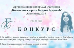 Konkurs raspisuje: Organizacioni odbor XXI književnih susreta “Gordana Brajović” Aleksinac 2018